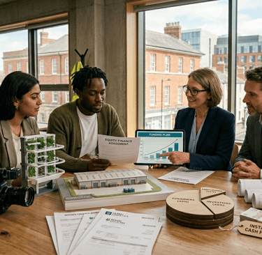 Equity finance is a method of raising capital by selling a share of your business to investors. In exchange for their cash, the investors become part-owners of the company. Unlike debt finance, there is no monthly repayment and no interest to pay. Instead, the "cost" of the money is a portion of your future profits and a say in how the business is run